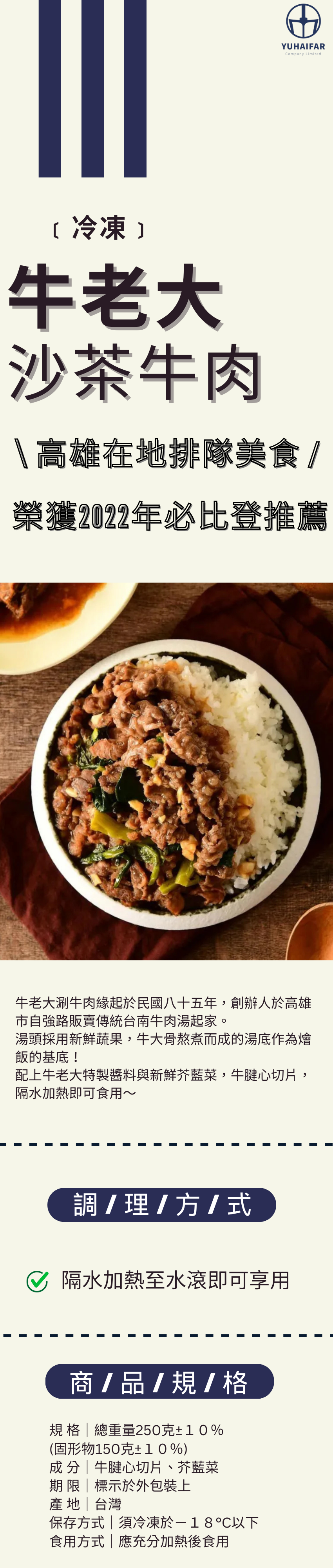 配上牛老大特製醬料與新鮮芥藍菜,牛腱心切片,隔水加熱即可食用~