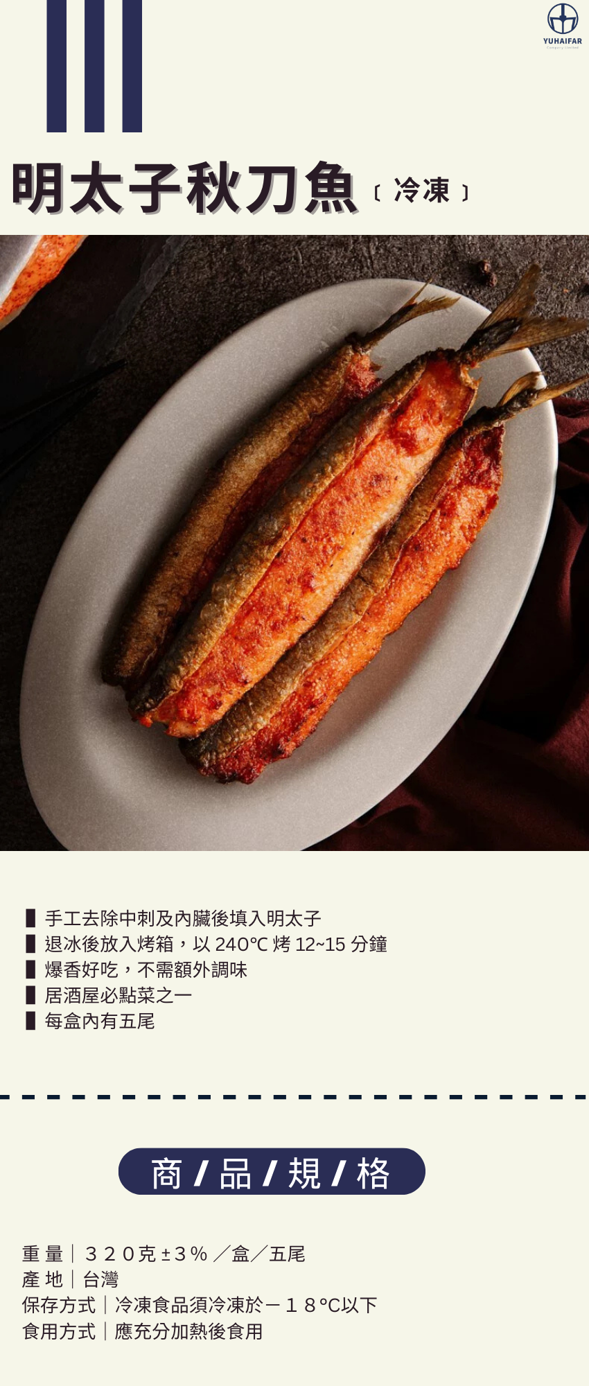 ⊙ 手工去除中刺及內臟後填入明太子