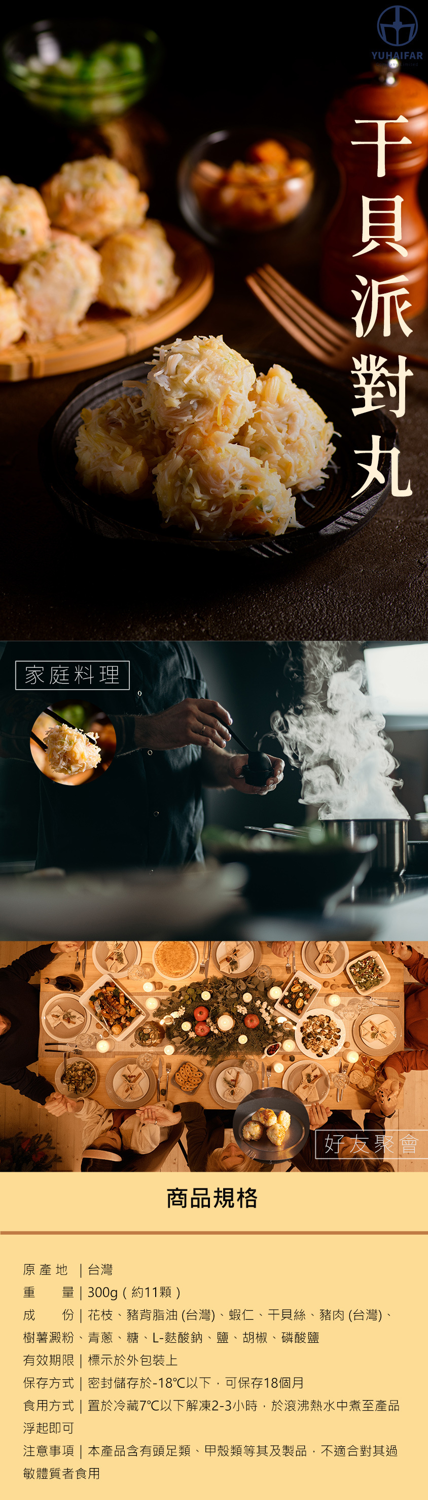 ◆ 使用頂級干貝包覆澎湖新鮮花枝和精選的高檔蝦仁,將干貝花枝丸的的鮮味完全釋放出來